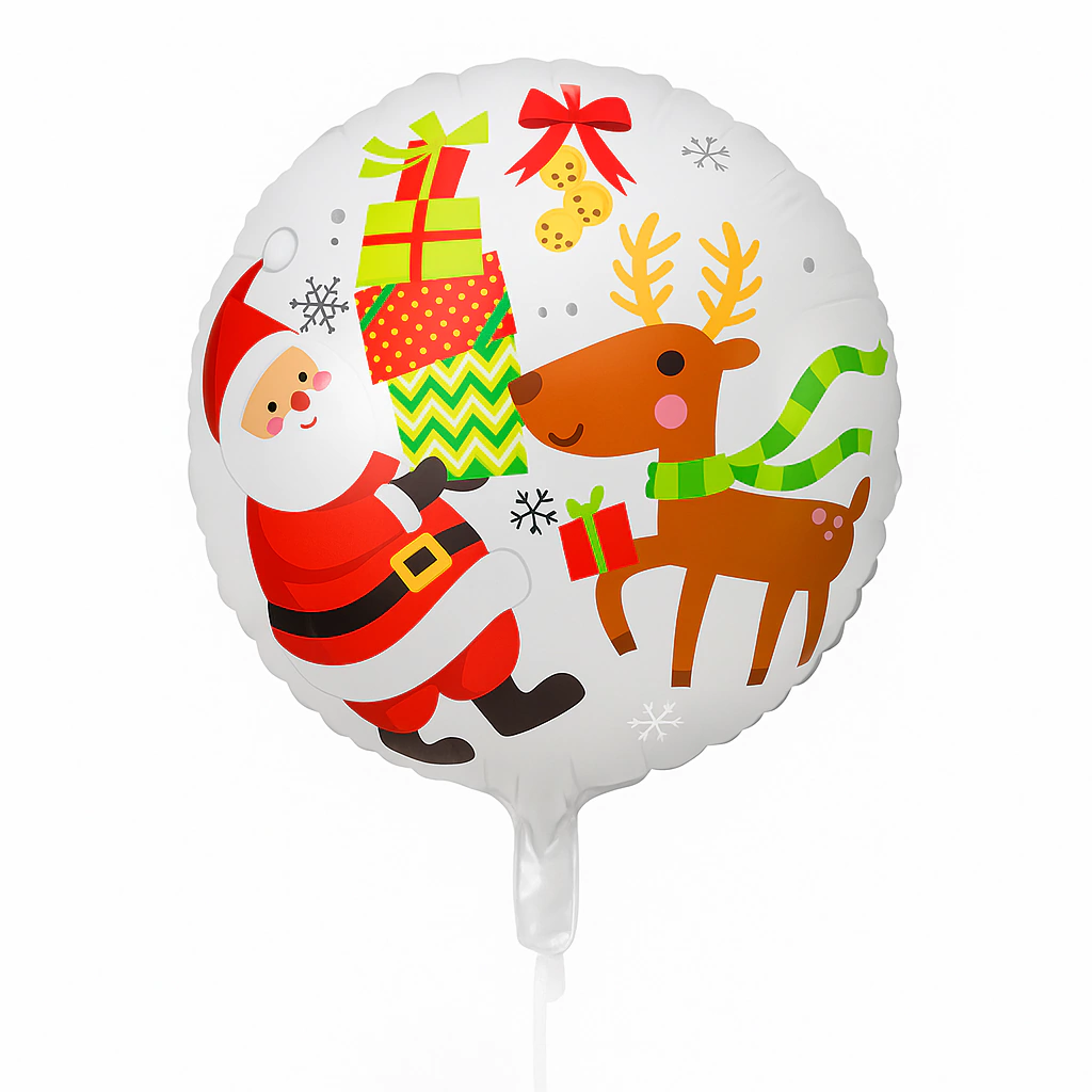 🦌 Diseño alegre con Papá Noel, reno y regalos coloridos