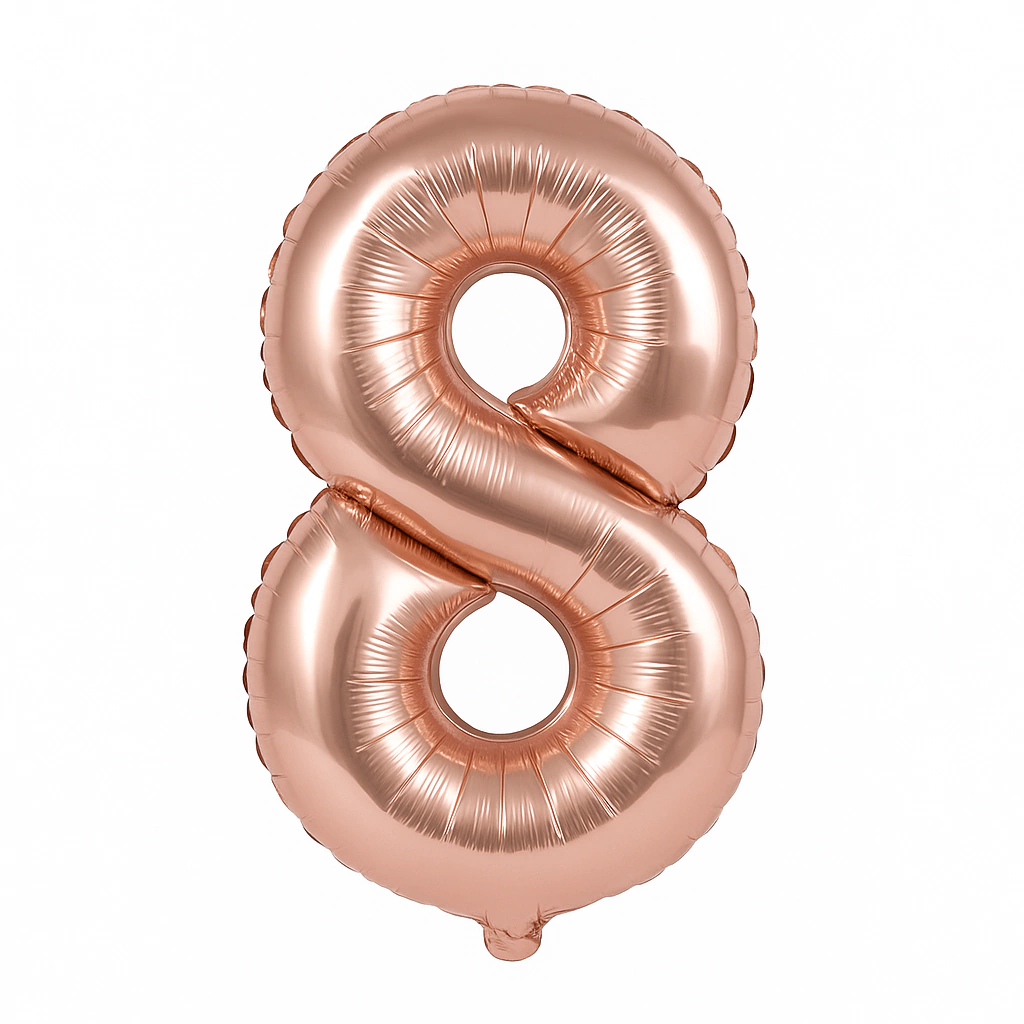 Fabricados en foil de alta calidad, estos globos en forma de número destacan por su elegante color rosado dorado que aporta glamour y distinción a cualquier evento. Ideales para cumpleaños, aniversarios, fiestas de 15, sesiones de fotos o decoraciones temáticas, se pueden combinar entre sí para formar cualquier edad o fecha.